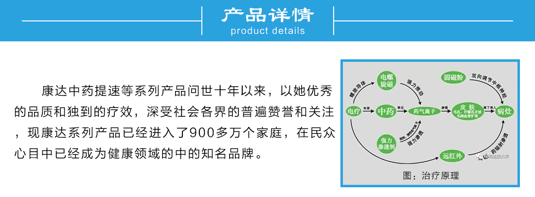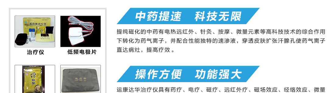 深圳运康达华科技有限公司以从事中医药、医疗器械、保健用品的开发研制、生产制造、销售服务为核心,并以中医养生培训、健康教育指导为依托、秉承弘扬民族中医药、造福人类健康的精神理念,以祖国的医学名著《黄帝内经》为理论基础,结合现代医疗、保健养生等,创立了中药提速疗法,开辟了一条新的治疗途径,为祖国中医中药插上了一双腾飞的翅膀。